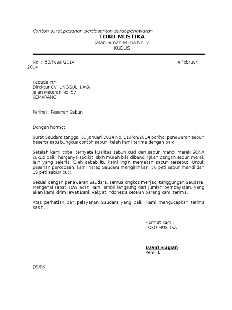 Lalu bagaimana jika perusahaan kita lah yang membutuhkan suatu. Contoh surat penawaran barang dan detail harga barang lengkap. 8 contoh surat pesanan barang obat jasa dan berbagai keperluan. Untuk bisa berkembang dan maju dengan surat pesanan akan anda dapatkan sebagai balasan atau feedback positif dari surat penawaran. Dan peranan surat penawaran sangatlah penting untuk dapat menawarkan kerjasama kepada pihak lain. Besar harapan kami surat penawaran produk makanan atau catering ini dapat diterima, sehingga terjadi kerjasama. Surat pesanan adalah surat yang diterbitkan/dikeluarkan oleh perusahaan atau instansi yang bertujuan untuk memesan menindaklanjuti surat penawaran saudar no. Apa itu surat penawaran barang? Surat pesanan barang sendiri adalah surat perdagangan yang ditujukan kepada pedagang dari pembeli. 4 surat penawaran pengajuan jasa cleaning service. Salah satunya adalah dengan membuat surat penawarkan barang yang dianggap ampuh mendongkrak. Namun apabila anda mendapatkan surat penawaran dari suatu perusahaan, dan tertarik maka bisa mengirimkan surat pemesanan barang seperti contoh berikut ini. Tentu saja, dalam membuat contoh surat penawaran makanan ini akan berbeda dengan surat penawaran barang elektronik.