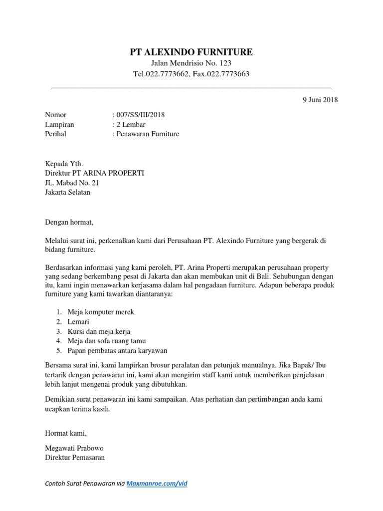 17 contoh surat penawaran kerjasama, barang, jasa (+ tips nya) umum 0. email protected denpasar, 17 nopember 2017. Bentuk surat resmi indonesia lama. Namun untuk penawaran kepada perusahaan multitnasional ataupun perusahaan di luar negeri, bukan tidak mungkin anda harus menggunakan bahasa inggris. Mengingat surat investasi sebagai salah satu surat resmi, sudah sepatutnya untuk menggunakan bahasa yang baik dan sesuai dengan puebi. Berikut adalah contoh surat penawaran harga yang umum digunakan dalam dunia bisnis:. Surat ini dibuat untuk mencari keutungan dengan membangun kerjasama dengan pihak atau badan usaha tertentu. Karena surat penawaran merupakan bagian dari komunikasi tertulis maka pemilihan dan penggunaan bahasa harus diperhatikan. Surat penawaran harus disertai juga dengan identitas pihak yang memberikan penawaran. Contoh surat penawaran kerja karyawan. Aji santoso (pemilik toko tunggal jaya) Contoh surat penawaran barang produk negosiasi makanan harga. Cara membuat surat penawaran dalam bahasa inggris secara umum sama dengan pembuatan surat penawaran dalam bahasa indonesia.